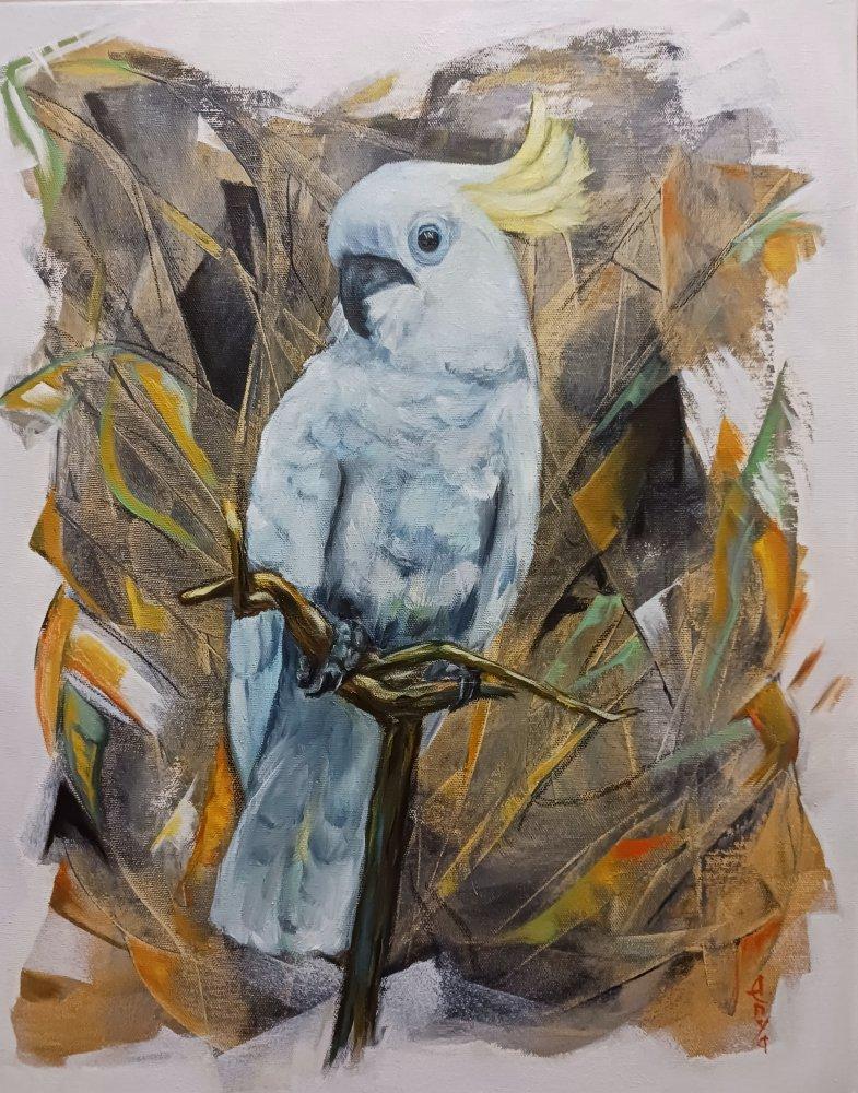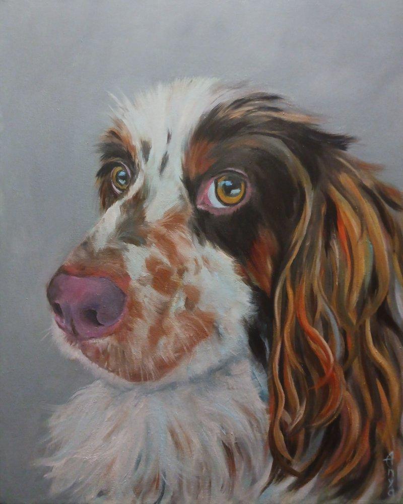 I painted him with soft, fluid brushstrokes to capture his warm personality and the way his gaze seems to follow you with calm trust.